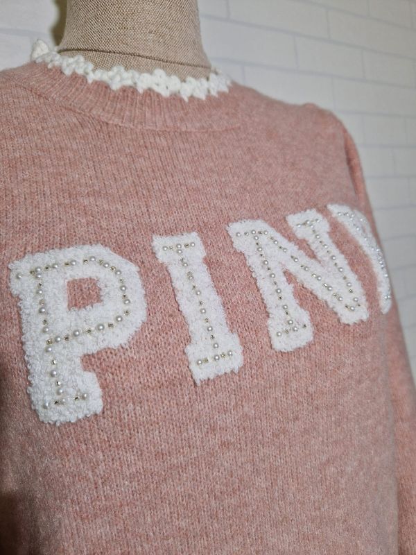 Jersey rosa con manga abullonada y cuello redondo con detalles blanco.